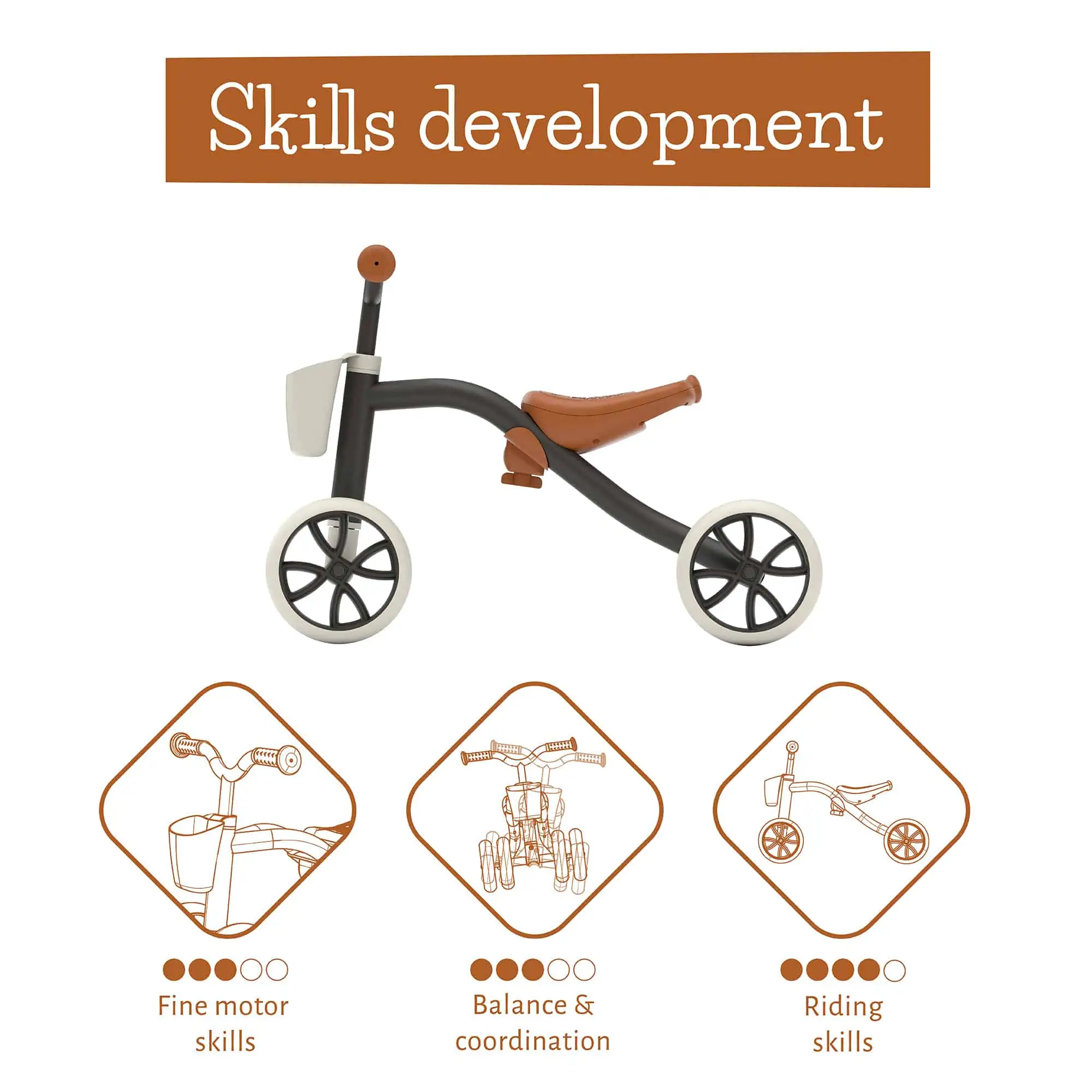 • Laufräder (Balance Bikes): Unsere Laufräder, wie der BMXie Vrooom, BMXie2, BMXie Glow, und Charlie Sport, fördern effektiv das Gleichgewicht und die Selbstständigkeit. Fördert aktives Lernen und frühe Fahrradbeherrschung.