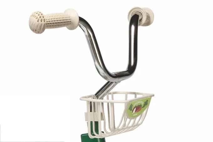 Das Dreirad hat ein chromatisches Lenkrad, das du in der Höhe einstellen kannst, und einen Plastikkorb, um deine Schätze mitzunehmen. Der robuste Stahlrahmen und der höhenverstellbare Kunststoff-Sattel sind langlebig und bieten eine bequeme Fahrt.