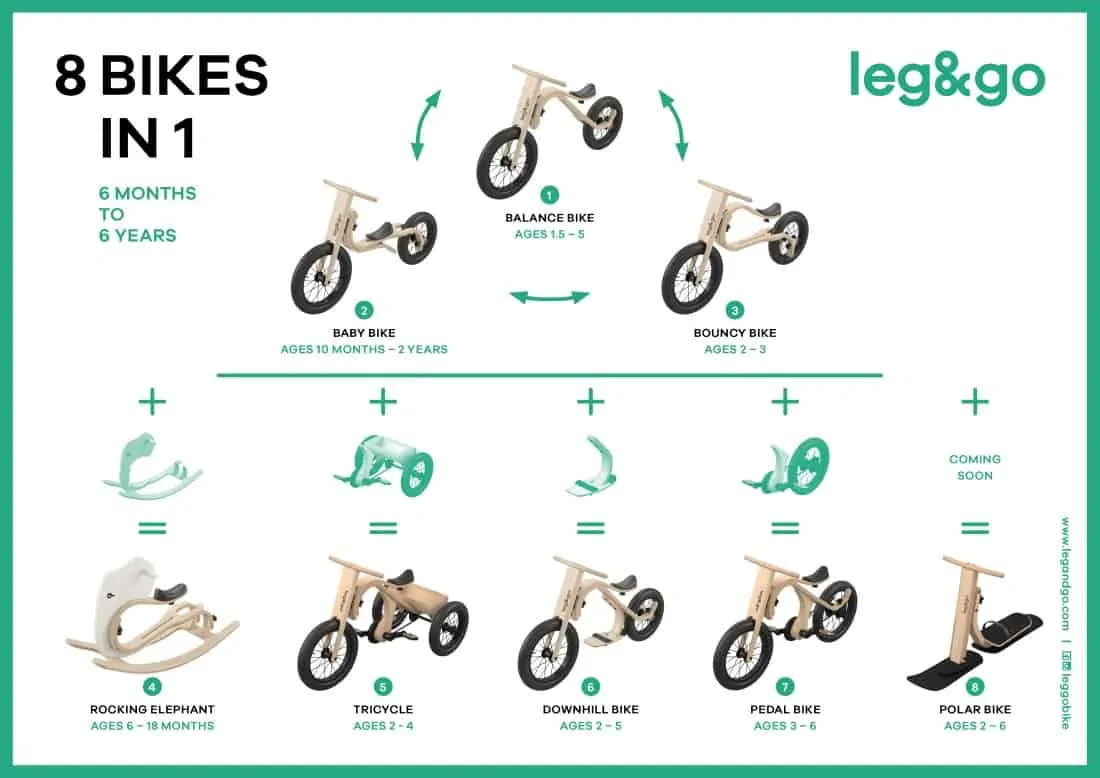 Das Leg&Go Balance Bike ist ein leichtes, preisgekröntes und hochwertiges 3in1 Laufrad, das mit dem Kind mitwächst.