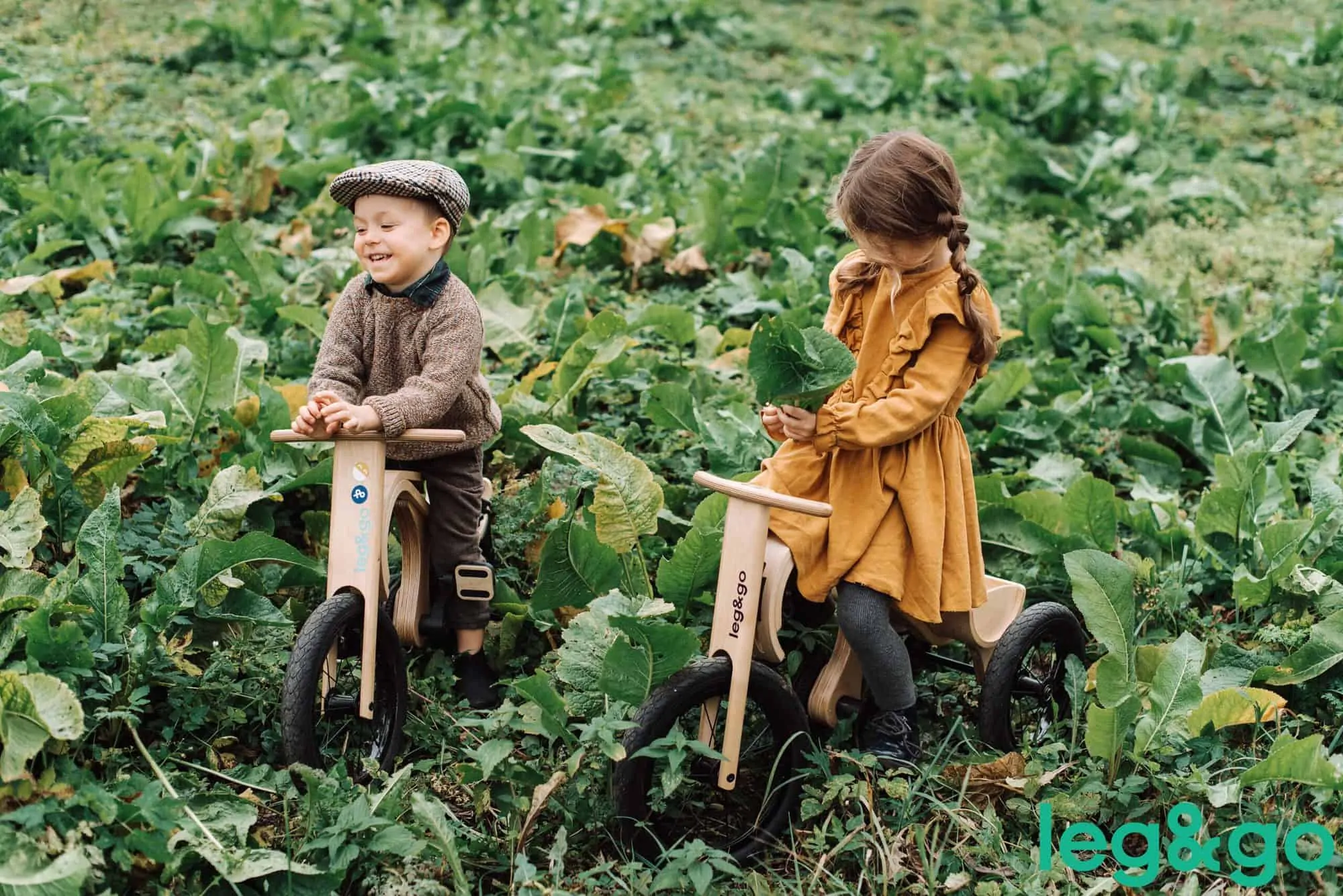 Das Leg&Go Bike besteht aus Birkenholz, hat allerdings wie ein echtes Fahrrad Luftbereifung, Leichtmetall-Felgen und Edelstahl-Speichen. Die Teile sind äußerst stabil und halten mehrere Jahre.  Die Holz-Rohstoffe werden ausschließlich aus nachhaltigen Quellen in Nordeuropa bezogen.