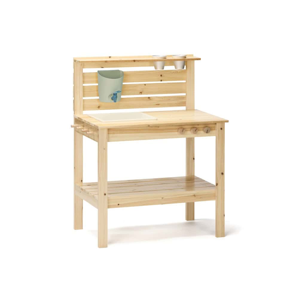 Vielseitige Outdoor-Küche für kreatives Spielen. Mit Handwaschbecken, Haken für Gartengeräte, Ablagen und Zinkbehältern. Fördert Fantasie, Kreativität und Organisationsfähigkeit. Nachhaltig aus FSC-zertifiziertem Kiefernholz.