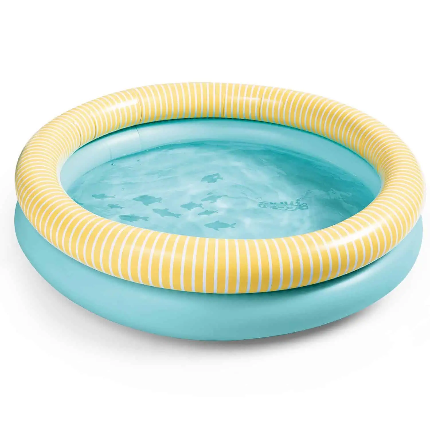 Verwandle deinen Garten, Balkon oder die Terrasse mit dem Quut Dippy Pool in eine erfrischende Sommeroase. Der stylische Poolring in Banana Blue begeistert mit lebhaften Unterwassergrafiken am Boden, die Kinderträume vom Ozean wecken. Hergestellt aus strapazierfähigem, phthalatfreiem Vinyl, ist der Dippy Pool langlebig und 100 % recyclebar. Dank der Easy Valves lässt er sich im Handumdrehen auf- und wieder abbauen. Mit einem Wasservolumen von bis zu 35 Litern bietet er genug Platz zum Planschen, Abkühlen und gemeinsamen Spielen. Ob Play Date, Staycation oder Familiennachmittag – der Quut Dippy Pool garantiert Sommerfreuden für Jung und Alt.