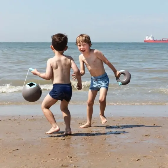 Ballo ist eine Erfindung der Design-Profis von Quuts. Die Belgier kennen sich bestens mit dem Strand aus und wissen, wie man Kinder mit kreativem Spielzeug begeistert. Das Design von Ballo ist ergonomisch und praktisch. Das Spielen mit dem Spieleimer fördert die motorischen Fähigkeiten sowie die Vorstellungskraft. Außerdem ist es immer eine gute Idee draußen zu spielen. Ballo gibt dir einen Grund mehr, deine Zeit in der Sonne anstatt im Haus zu verbringen. Der Eimer besteht aus stabilem, widerstandsfähigem Kunststoff. Gleichzeitig ist er absolut sicher und leicht zu reinigen. Ballo ist in der dunkelblauen Variante Ocean oder in der dunkelroten Variante Cherry verfügbar.