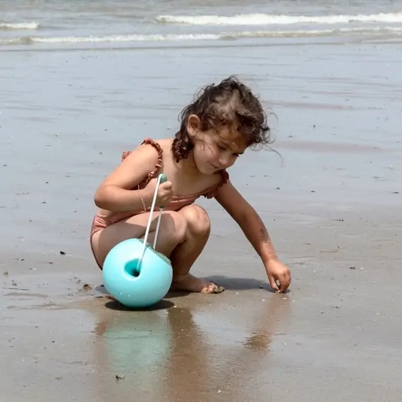 Quut Ballo ist der spill-proof Eimer (3,6 L) für kleine Entdecker: Die kugelförmige Basis sorgt für Stabilität, der ergonomische Griff für sicheren Transport von Wasser oder Sand – ganz ohne Kleckern!