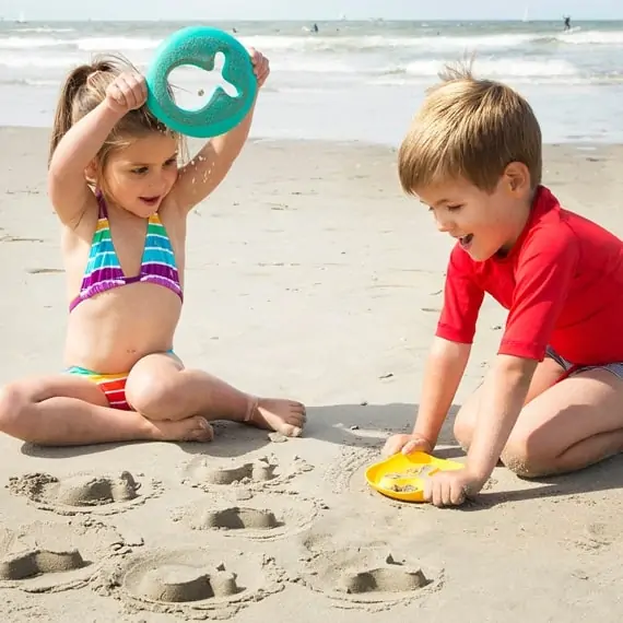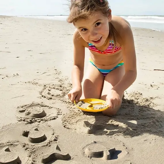 Magic Shapers sind eine Erfindung der Design-Profis von Quuts. Die Belgier kennen sich bestens mit dem Strand aus und wissen, wie man Kinder mit kreativem Spielzeug begeistert. Das Design der Magic Shapers ist ergonomisch und praktisch. Das Spielen mit den Förmchen fördert die motorischen Fähigkeiten sowie die Vorstellungskraft. Außerdem ist es immer eine gute Idee draußen zu spielen. Magic Shapers geben dir einen Grund mehr, deine Zeit in der Sonne anstatt im Haus zu verbringen. Die Förmchen bestehen aus stabilem, widerstandsfähigem Kunststoff. Gleichzeitig sind sie absolut sicher und leicht zu reinigen. Magic Shapers sind bei uns im Set „Sunnylove“, bestehend aus einer gelben Sonnenform und einer roten Herzform.