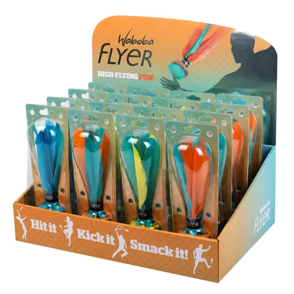 Der Waboba Flyer ist ein lustiges Outdoor-Spielzeug, das die Elemente von Hacky Sack und Badminton geschickt kombiniert. Er ist ein weicher Gummifederball, der mit Händen, Knien und Füßen geschlagen wird und ein wahres Spielvergnügen garantiert. Der Flyer ist kompakt und leicht, was ihn für Indoor- und Outdoor-Spielmöglichkeiten geeignet macht, ganz gleich wie groß der verfügbare Platz ist. Ob im Garten, am Strand oder im Wohnzimmer – der Waboba Flyer ist immer bereit für actiongeladene Spielzeiten!