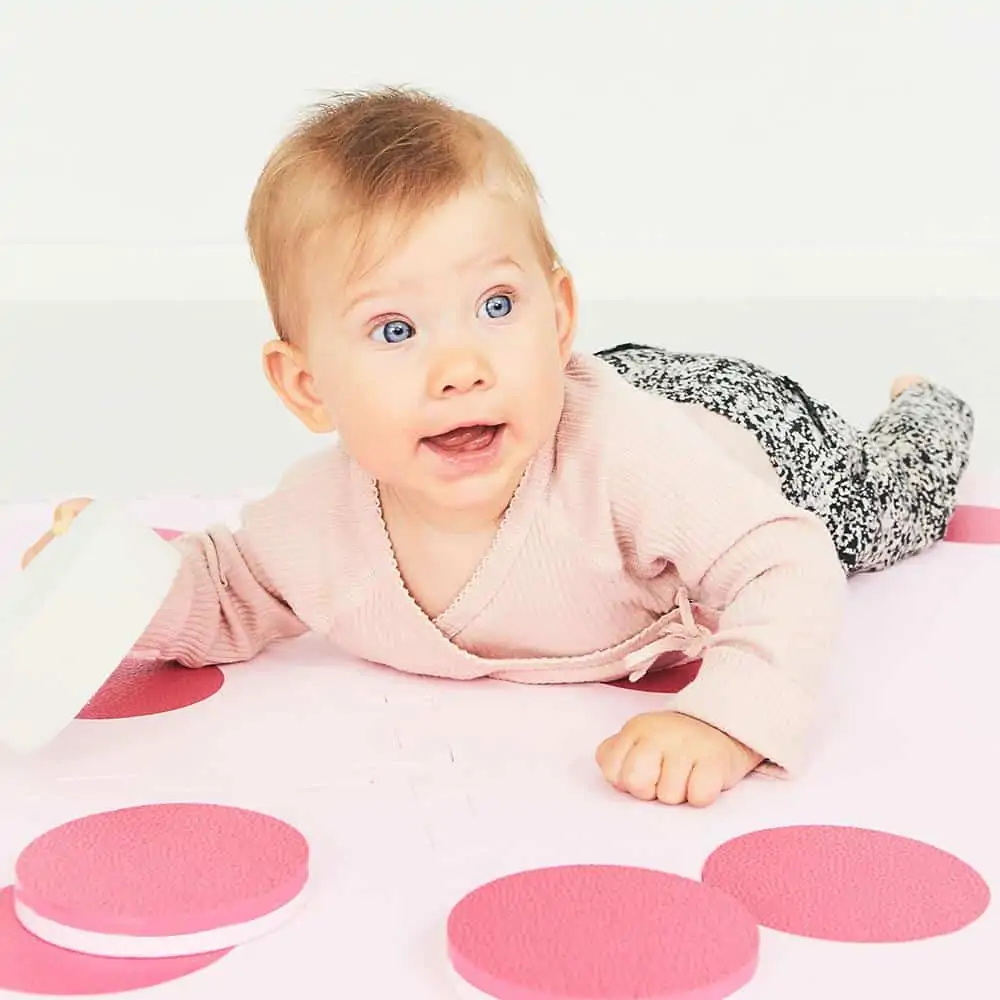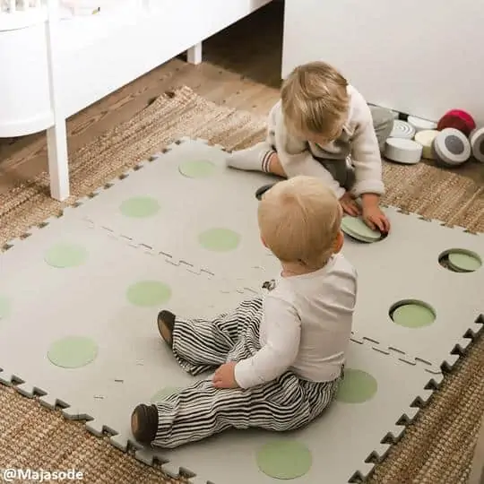 Mit der Bobles Tummelmatte ist es möglich, auf dem Boden zu spielen, ohne dass es kalt und unbequem sein muss. Die Matte besteht aus vier Bodenteilen, vier Kreisblöcken, die du umdrehen und bewegen kannst, sowie 4 Trittsteinen. Babys können bequem auf der isolierend wirkenden Matte liegen und die verschiedenen Farbtöne wahrnehmen. Kinder können dem gepunkteten Pfad folgen oder spannende Bewegungsspiele mit den Trittsteinen spielen. Wer kann besser von einem Stein zum anderen springen? Die Tummelmatte ist perfekt geeignet, um herumzutoben, wenn der Körper mal wieder etwas Bewegung braucht. Gleichzeitig eignet sie sich auch für stilles Ausruhen auf dem Boden.