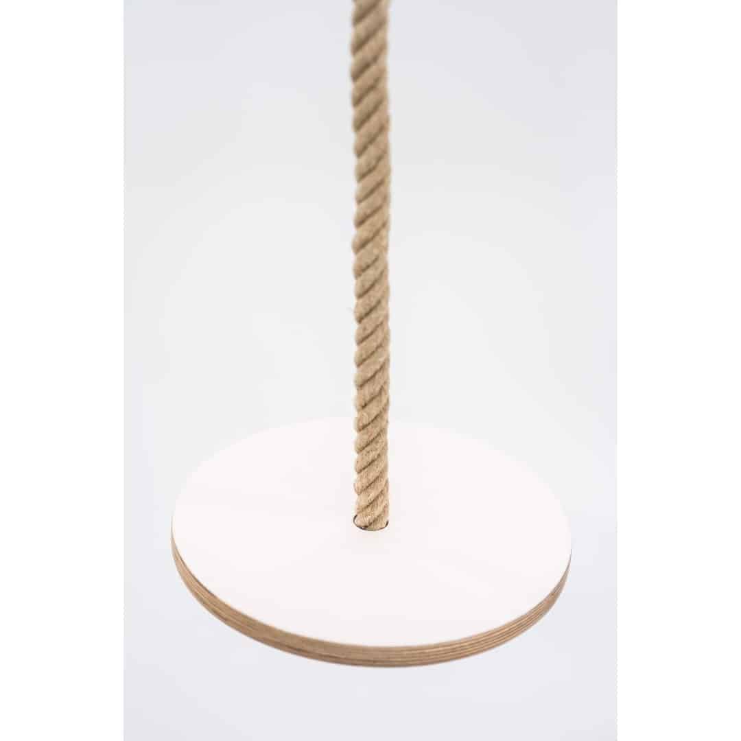 Die Leg & Go Disk Swing ist eine Scheibenschaukel aus Holz, die du an drinnen und draußen aufhängen kannst. Die Schaukel besteht aus hochwertigem, FSC-zertifizierten Birkensperrholz aus Finnland. Sie ist ca. 1,8 cm dick und hat einen Durchmesser von 30 cm, sodass Kinder bequem darauf sitzen und schaukeln können. Zum Aufhängen liegt ein etwa 3 m langes und 2,4 cm dickes Seil aus Naturhanf bei. Das Seil ist äußerst langlebig und kann von alleine eigentlich gar nicht kaputt gehen. Darüber hinaus ist es abriebsfest und verfügt über eine gute Griffigkeit. Die Leg & Go Disk Swing ist in weiß inkl. Deckenhaken erhältlich.