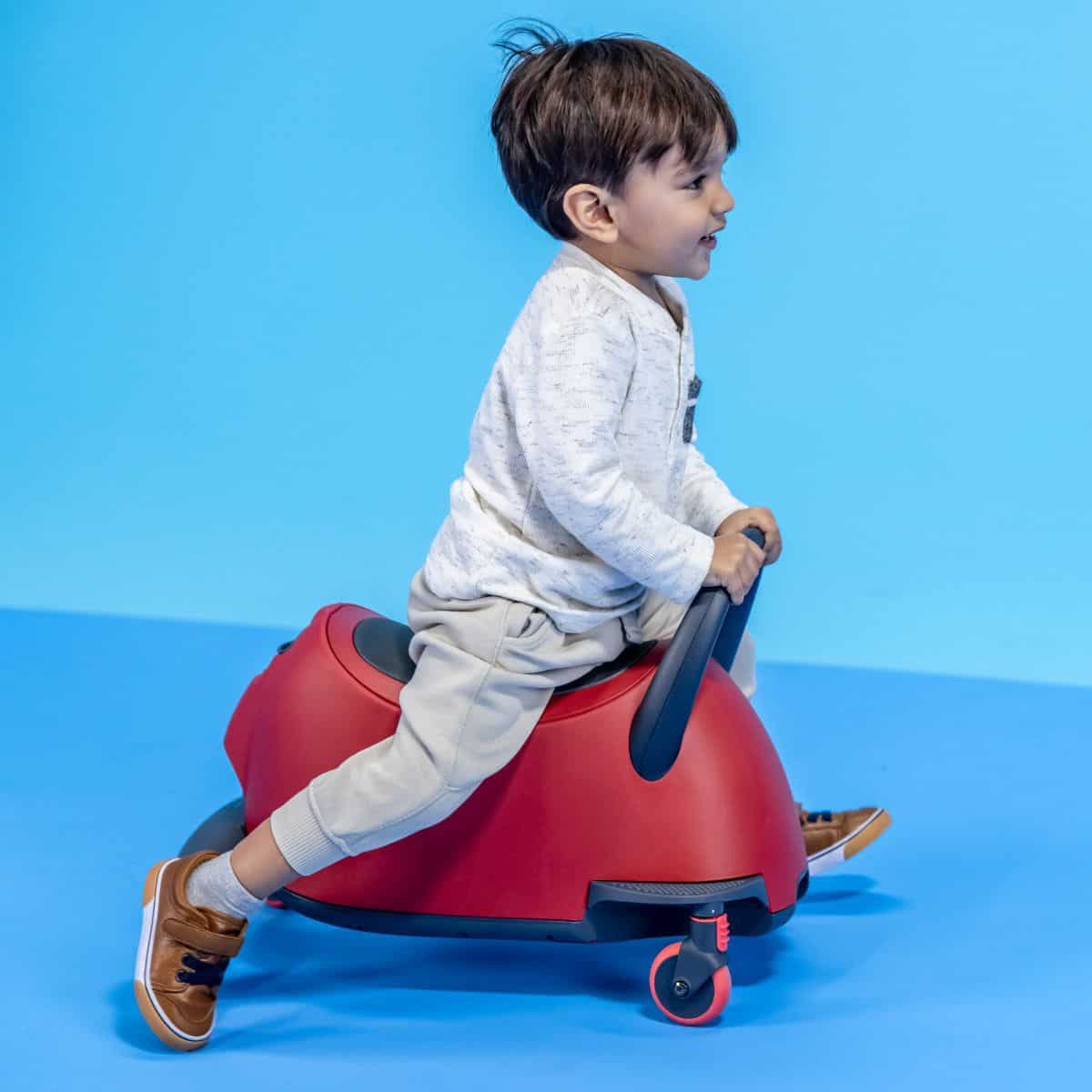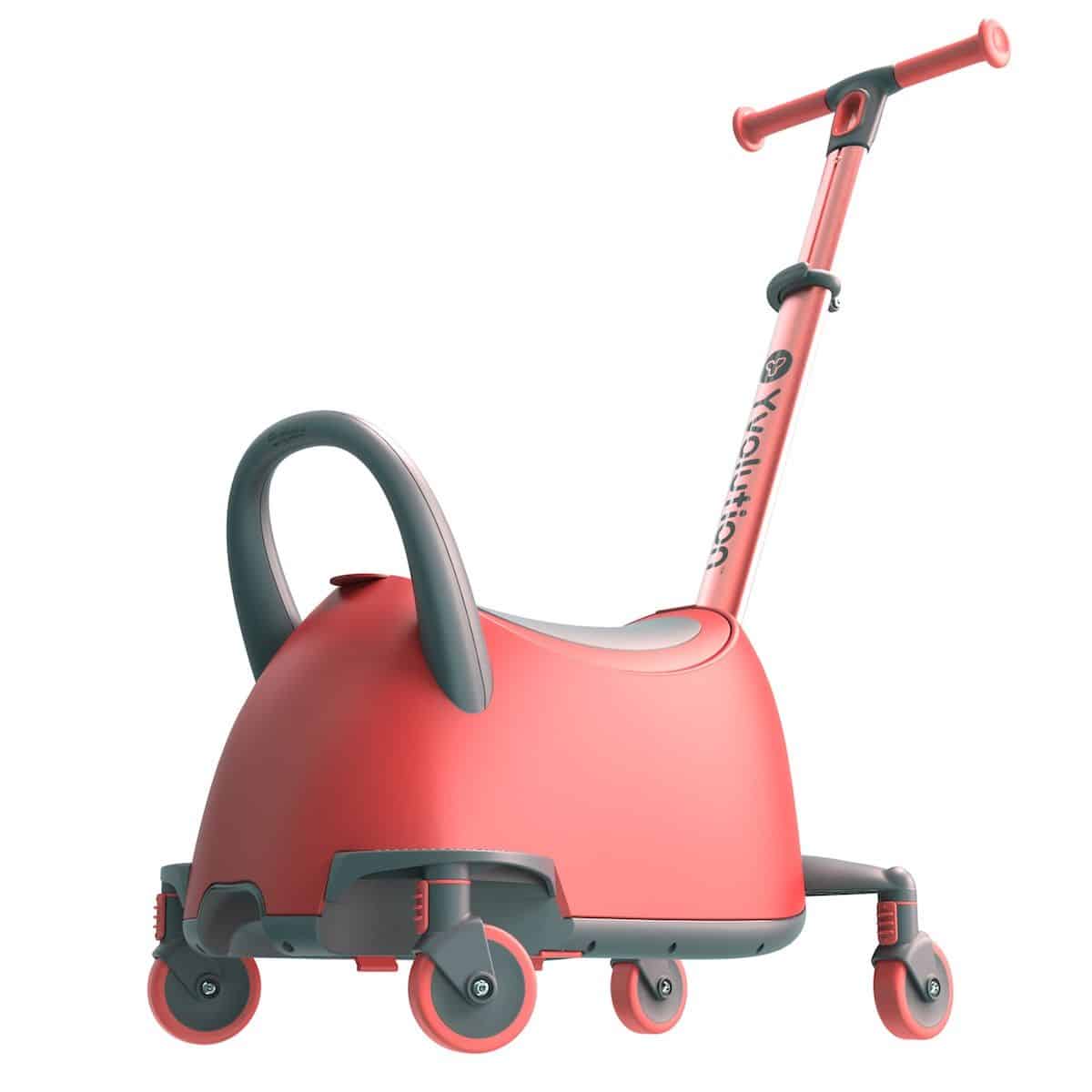 Luna ist nicht einfach nur ein Roller oder ein Rutscher. Es ist ein vielseitiges Spielzeug, dass du mühelos in eine seiner 5 verschiedenen Modi umbauen kannst. Modus 1 bietet Eltern die Möglichkeit, das Aufsitzfahrzeug mit einem Stab zu steuern. Im Modus 2 bleibt der Stab zwar dran, aber das Steuerrad wird entfernt. Jetzt ist das Kind für das Lenken verantwortlich. Im dritten Modus ist Luna ein Rutscherfahrzeug, das sich um 360° drehen kann. Modus 4 macht Luna zum Y Glider Nua, einem Tretroller mit verstärktem Brett, einstellbarem Lenker und LED Rädern. Im Modus 5 öffnest du den Sitz, um beispielsweise Spielsachen für unterwegs einzupacken.