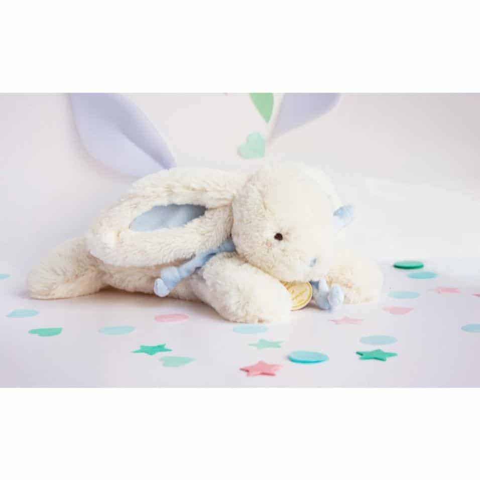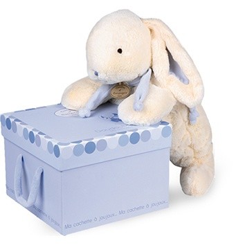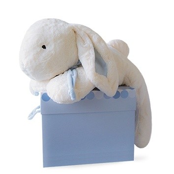 Weicher, hochwertig verarbeiteter und einfach waschbarer Plüschhase, der dich ab der Geburt begleiten kann. Wird in einer schicken Geschenkbox geliefert. Mit Öhrchen in Blau oder Rosa erhältlich.