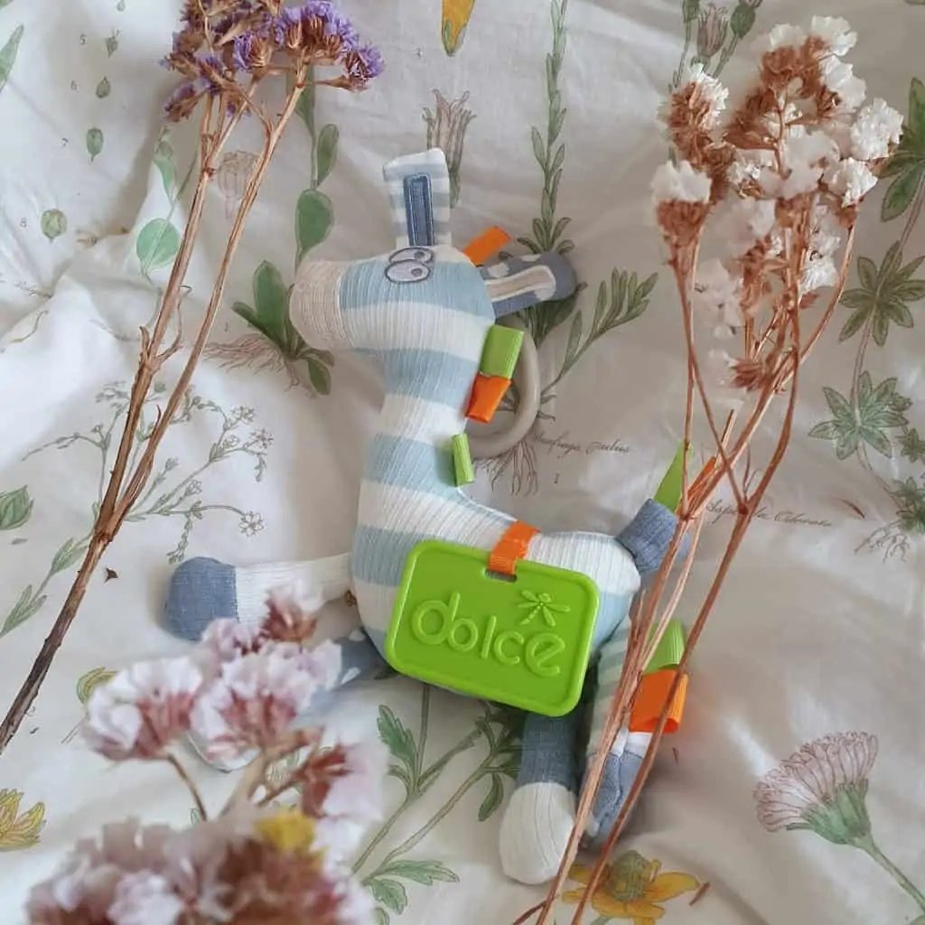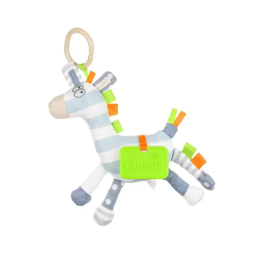 Zack das Zebra von Dolce wird dir stundenlangen Spaß bereiten. Es gibt so viel an ihm zu entdecken: Die Nase quietscht, und der Körper ist eine Rassel. Außerdem besteht das Zebra aus vielen verschiedenen Materialien mit unterschiedlichen Texturen. Eine Kauplatte ist auch mit integriert.