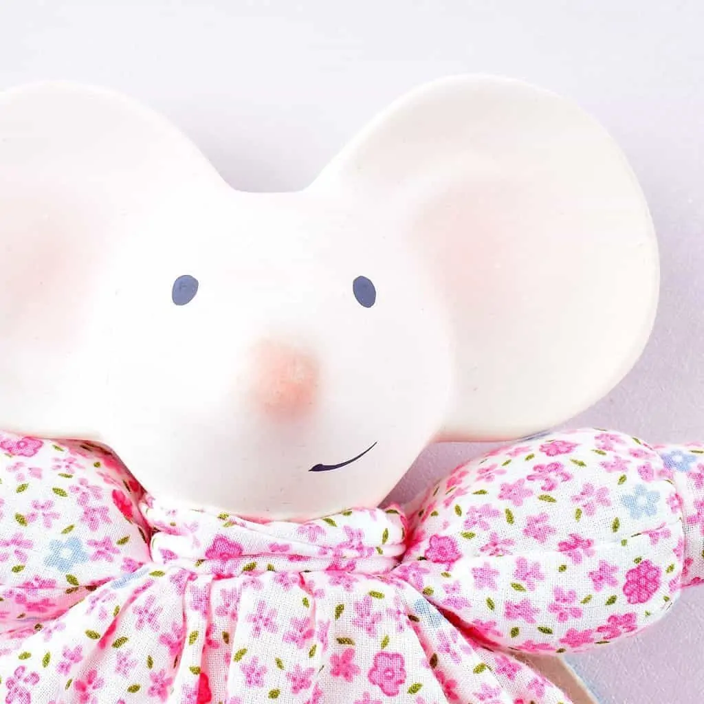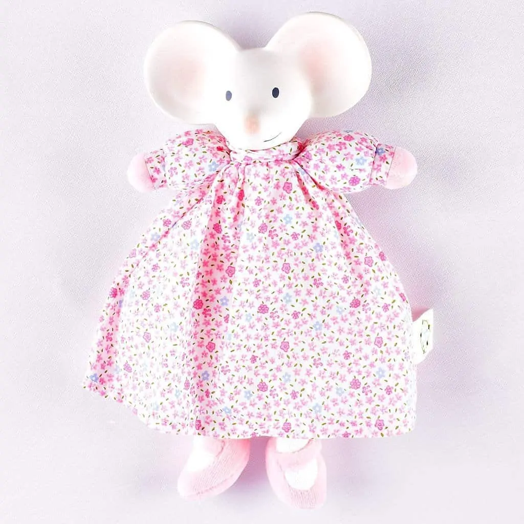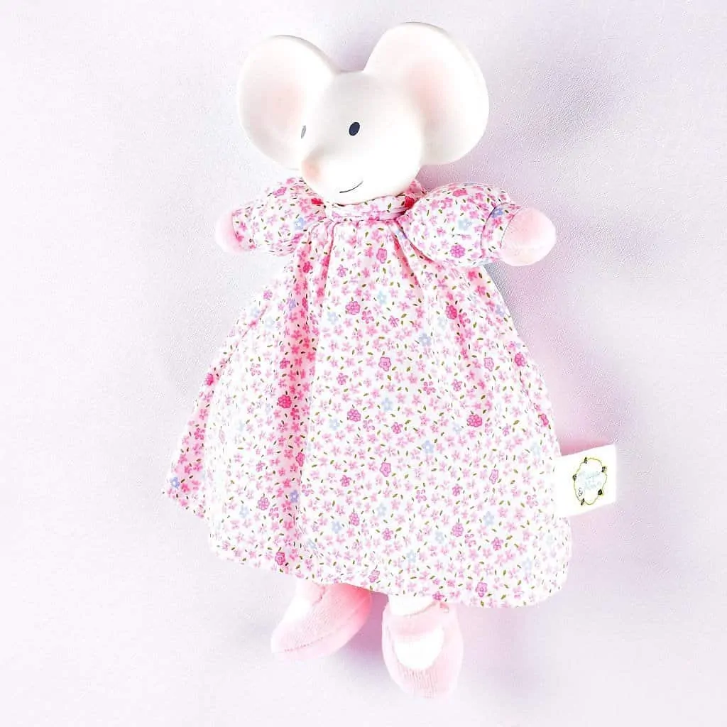 Meiya die Kuschelmaus lädt mit ihrem weichen Stoffkörper zum Schmusen und Kuscheln ein. Der Kopf aus Naturkautschuk ist beißfest und somit ideal für die Zahnungsphase.