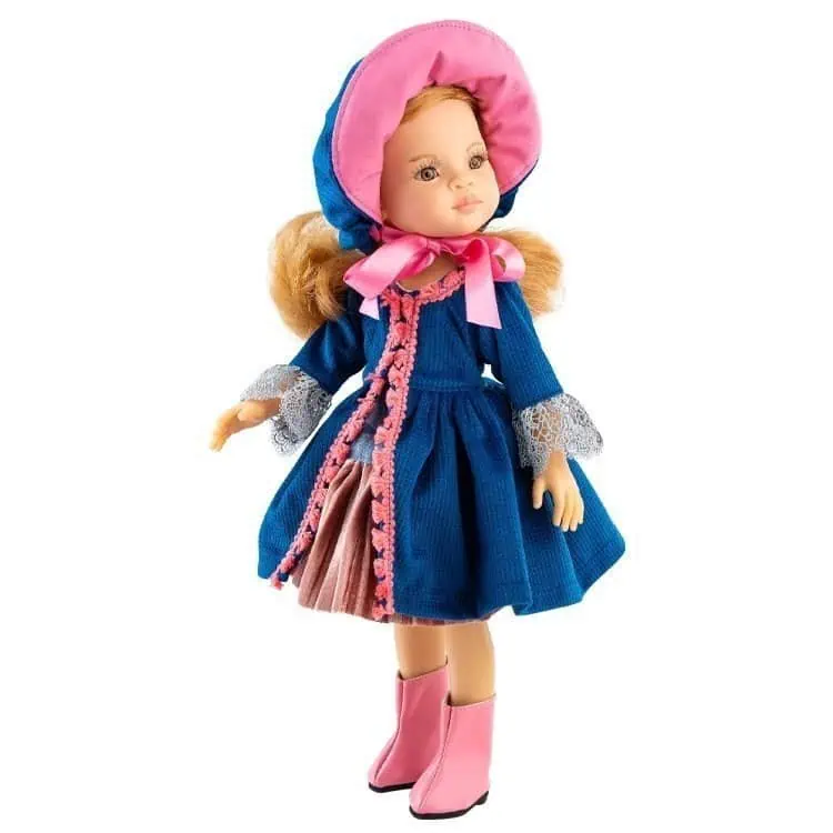 Paola Reina Puppe Larisa, 32 cm groß, aus der Las Amigas Epoch Serie. Mit blonden Haaren und braunen Augen. Hochwertiger Vinylkörper, geeignet für Kinder ab 3 Jahren.