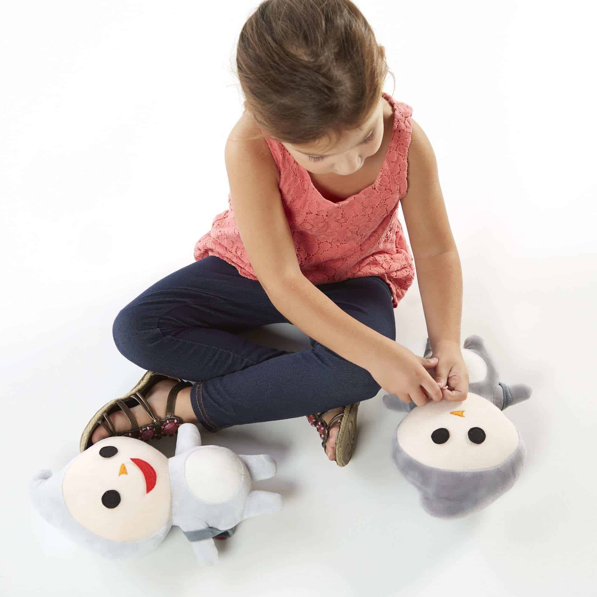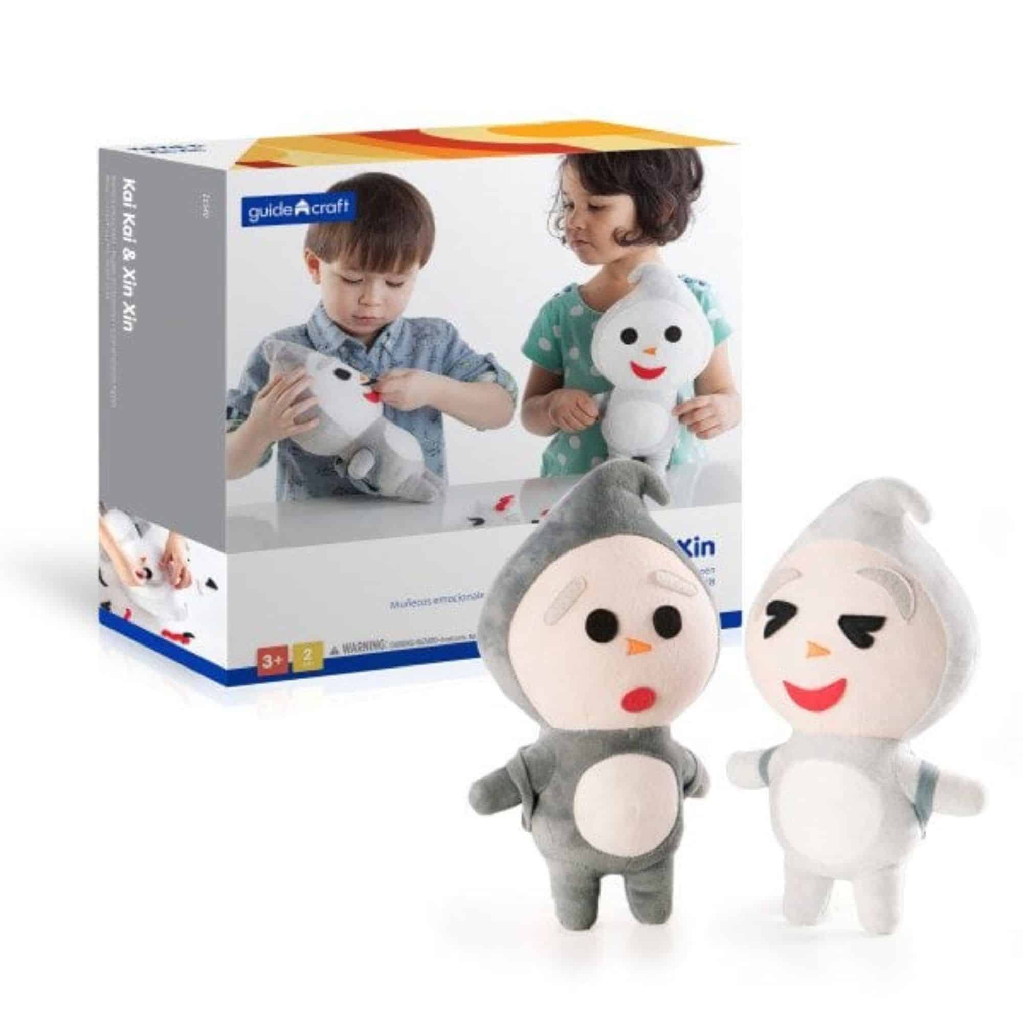 Zwei Plüschpuppen mit 13 wechselbaren Gesichtsausdrücken und kleinen Rucksäcken zum Lagern der nicht verwendeten Teile. Fördert Emotionserkennung und soziales Bewusstsein. Inklusive Activity-Karten für sozial-emotionale Spiele und Aktivitäten.